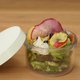 蓋子就像小冰箱,在溫暖的日子也能保持食材新鮮;附加底部隔層,多餘的水分和湯汁都會過濾,蔬菜不會粘在一起~