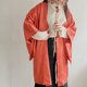 - 日本製和風印花薄款橘紅色古著道行和服外套