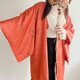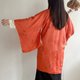 日本製和風印花薄款橘紅色古著道行和服外套-H450