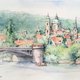 布拉格 伏爾塔瓦河畔/手繪原創水彩畫/含框