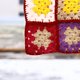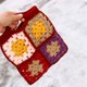 這次的設計靈感來自很多鉤織者都非常喜愛的織片,再配合70-80年代的花磚配色,利用織片來變成袋身的圖案,讓手提袋煥然一新。完成後發現好像出來的效果不錯,一格格的織片別有韻味,出門搭配不同的風格的日常服飾也沒有問題。