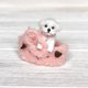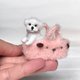 From the accessories I crocheted the collar and decorated it with micro rhinestones. I knitted her a pink fluffy bag with an embroidered dog face.