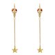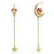 These are elaborate earrings designed with the motif of the star and the shining crescent moon at night in the Sky Travel Collection. It is a design with a snowball set on the crescent moon and a shining star around it.
