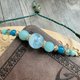 - 蠟線 , 銅珠 , 海藍寶, 天河石, 磷灰石, 綠草莓晶