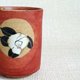 初冬の陶房の窓から見える庭に咲く白椿を描いた四方湯のみです。