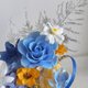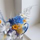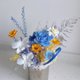 藍玫瑰的神秘浪漫,搭配石斛蘭的純淨優雅,點綴金黃百日草的堅毅祝福,再以文竹的高雅清新勾勒。藍與黃的對話,像晨光與天空交織,為日常注入希望與力量。