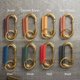 這款可愛的黃銅登山扣附有皮革包裹,並帶有一個名字獨特的小標籤。