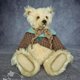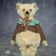 Teddy is sewn of german mohair and stuffed with cherry and cedar sawdust, cedar wood wool and buckwheat husk (soft filling). The bear is very pleasant. Also I added a mineral granulate for a pleasant bear weight. Made using teddy technology using discs and cotter pins. Teddy has glass eyes and embroidered nose. The bear is tinted with oil paints. Teddy bear can stand on its own while finding balance. For the teddy I sewed a jacket.