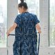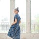 インド更紗のdabuプリントと呼ばれる、泥状のものを用いて生地に色が染まらないようにプリントする泥防染技法を用い、indigoで染め上げています。