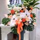 / 以白色花材為主調,象徵純淨與安息,加上沉穩的橘色球菊點綴,為整體增添溫度,彷彿替思念的人點起一盞柔和的燈。 /