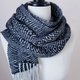 純羊毛的豐盈絨感、手工織品的立體結構、純天然纖維的透氣乾爽,保暖舒適就是這麼簡單、直接。 這件圍巾的設計是四綜波浪斜紋,充滿節奏和立體感,剛柔並重。藍黑和淺灰的搭配,色調分明,表現獨特個性,輕易為各種穿搭注入靈魂! /材質/ 淺灰色經線: 100% 羔羊毛 藍黑緯線: 100% Supergeelong 美麗諾羊毛 /尺寸/ 長 163 cm (包含流穌) 寬 19 cm /特性/ 厚薄:蓬鬆立體 柔軟度:十分柔軟 保暖度:高 適合季節:秋/冬 /保養/ 請使用中性/羊毛洗衣液溫水手洗,以大毛巾包裹吸走多餘水份,置於陰涼地方平舖晾乾。 ⚠️注意: 不建議機洗; 為免使織品過度氈化及縮水,切勿使用鹼性洗滌劑、水溫切勿高於40ºC、切勿過度搓揉; 為免織品變形,切勿擰/扭乾,乾透前切勿吊掛。 handwoven by Carina