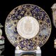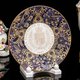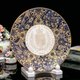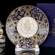 此款 Sovereign Plate 由英國皇家御用名窯 Royal Worcester 代表 Royal Mint(皇家造幣局) 精心設計製作,紀念伊麗莎白二世登基 50 週年(金禧盛典)。整體以皇家深藍襯托滿版 23K 金彩花紋,中央以金雕徽章呈現典雅之最,盡顯皇家氣度。