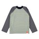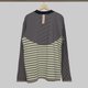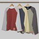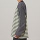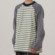 マルチカラーのストライプ生地を組み合わせたロングスリーブTシャツ。