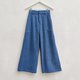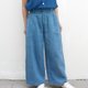 這款寬鬆闊腿褲採用透氣棉質布料製成,並經靛藍染色和石洗處理,呈現出獨特的線條圖案。布料輕盈透氣,非常適合溫暖天氣以及注重天然材質的人士穿著。