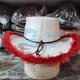 Soft red faux-fur trim around the brim