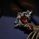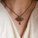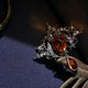 這只墜子的作工非常好,仔細看墜子邊緣模仿自然花朵的有機曲線可見端倪。老式切割玻璃石的配色是少見的琥珀蜜糖色搭配透明無色。墜子的驚喜之處在背面:背部為9k玫瑰金而且有美麗的手工刻紋。
