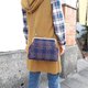 / 材質 / 黑色口金,毛呢布,布襯,鋪棉,斜背帶(包含龍蝦鈎)總長117cm,手挽長度41cm(含鈎扣),真皮部分寬1.5cm(為頭層皮非二層皮),若想增加鍊子長度,請聯絡設計師。