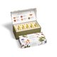 新型態的開蓋式包裝設計清楚呈現每個手包金字塔茶包及茶品介紹,讓您輕鬆選擇每日的專享美味。內含十個金字塔型絲質茶包,每種口味皆有兩個茶包:杏桃杏仁風味茶、藍莓梅洛茶、櫻桃風味柯夢茶、奇異果萊姆風味茶、香橙薄荷茶。