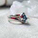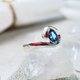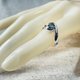 ウェーブ掛かったデザインの中央には澄んだ色のブルートパーズ、石言葉は知性や友情。