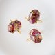 お花のパーツはゴールドの石座(爪)で留めて、天然石のような仕上がりにしています。