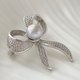 每個女生的內心都有一個蝴蝶結的夢。紗織小姐在千百萬顆天然淡水珍珠中搜尋到極光炫彩的鉑金灰色珍珠,配以動感飄逸的滿鑲晶體鋯石蝴蝶結,整體造型慵懶生動,像剛剛打好的絲帶蝴蝶結略有一些回彈的跡象,活靈活現,讓胸口有愛,閃閃發光。