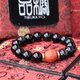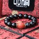 原礦天然黑曜石手珠 12mm 柿子紅南紅瑪瑙回紋珠 佛珠手鍊飾品 - 手鍊/手環 - 玉石
