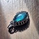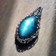同樣是近期自己滿喜歡的包框方式,就我個人的體感越厚的主石做起來真的越美,另外就是近期外國礦商手上收到的那種非傳統蛋面而是側邊等寬的拉長裸石做起來也有奇效(當然這個型態的裸石其實原本應該是主要對應金工包邊的,包邊做起來同樣特別合適),這顆拉長是比較早期收的超厚蛋面,對應他的色調與厚實的存在感選了同樣有獨特性格的銀灰線色,完成的瞬間我真的覺得這個包框方式終於讓他等到了😇拍照時他的光似乎也比先前亮眼了許多,是我自己也很滿意的一件。