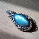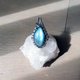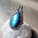 拉長石吊墜,金屬材質為鈦金屬色(銀灰色)藝術銅線,整體尺寸(長x寬)為43x25mm。