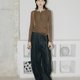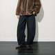 選用古銅色的 YKK 拉鏈,後腰手工訂的棕色皮牌,褲子面上棕色明線,整體復古休閒又日常;兩側口袋做的更大更低,便於雙手輕鬆放入,前片分割線更豐富了褲子設計感。