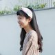 在當地布莊裏頭思考著哪塊布料適合做成髮帶