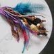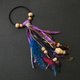 - フェザー(羽飾り)やウッドビーズ・裂き布・シルク糸・ニット糸・革紐などを付けたハンドメイドのゴム飾りです。