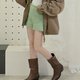 - 立體鞋頭設計復古氣息濃厚 舒適的短褲與牛仔靴筒高的比例恰到好處 超軟牛皮筒圍有二段式銀釦 可以調整搭配需要的寬窄