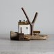 流木、ねじ・釘(赤錆加工)、ホワイトウッド(欧州スプルース、ドイツトウヒなど)、ステイン、ペンキ等で製作。ヤスリでダメージ感を演出しています。「潮騒とカモメの鳴き声、風の音」を感じていただければ幸いです。
