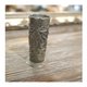 小巧精緻的老件金屬小器皿,整體呈圓柱形,器身佈滿了細膩的立體浮雕裝飾,具有濃厚的古典或宗教藝術風格。