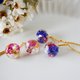 お花は、自宅で育てたアリッサムとハーブのコーンフラワーをドライフラワーにしました。鮮やかなブルーとピンクのコントラストが個性的で目を引きます。花びらと一緒に、小さな淡水パールも1粒閉じ込めました。