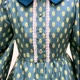 深いブルーに、小さなお花のカメオ柄がちりばめられた、どこか懐かしく、レトロ感のあるコットンワンピース。