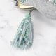 小さなかわいいタッセルが付いています。使用している糸は選りすぐりの三種類の糸を引き合わせて制作しました。