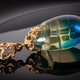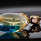 迷人的藍琥珀與璀璨的金色光芒交織,營造出真正魔幻的效果。吊墜的每個切面都隨光線舞動,散發著令人驚豔的優雅魅力,必將吸引眾人目光。