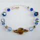 メインに可愛らしい土星チャームを真ん中に置き、そこにカプリブルーやコバルトブルーなど様々なブルー系のファイアポリッシュチェコビーズやガラスビーズなどをシンメトリーに組み合わせたお洒落なブレスレットとなっております☆