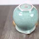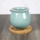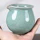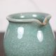 葉老師的哥窯冰裂,燒製手法成熟,透如湖水的藍綠色,配上細緻的開片,在不同光源下時有時閃亮,有時青鬱,呈現土與釉的一種交融感。而細密的開片再均勻與茶湯接觸後,紋理漸深,更顯潤澤。
