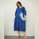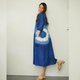 Round neck with puff sleeve elbow length, free size hip with cute little pocket and tie dye target pattern on the side. Mini dress, lovely design, cool indigo dyed pattern.