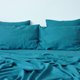 • Includes 1 linen fitted sheet and 2 pillowcases (optional) in Sea wave color