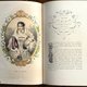 本書的裝幀藝術無可比擬:墨綠色布封面飾以繁複精緻的燙金浮雕圖案,描繪了仕女與花卉環繞的浪漫寓言場景,是當時「浪漫主義禮物書」風格的極致展現,背面風格化的多色花束圖案與主題呼應,四角細膩的壓花邊框增添了無與倫比的古典氣質,內頁的十四幅彩色版畫不僅是 LOUIS LASALLE 的藝術結晶,更是十九世紀手工藝的極致體現,每一幅插圖的線條雖由機器印刷,但其上鮮豔豐富的色彩卻是由工匠逐一手工上色完成,這項費時費力的程序,使每一張版畫都成為獨一無二的藝術品,即使在當時的大批量印刷時代,這種人工著色版畫仍屬高端珍品。扉頁的古典襯線字體則反映了19世紀嚴謹的印刷美學。除此之外,十四幅女性肖像皆非單純裝飾,每一幅畫像的花圈框架都巧妙地選用了該章節的主題花卉,這些花朵不僅是敘事線索,更象徵著該女士獨特的性格與德行,例如,在長春花(La Pervenche)圍繞下的女性肖像,花朵代表著永恆的思念與回憶,暗喻她在故事中扮演的情感核心角色,又如雛菊(Les Marguerites)環繞著圖盧茲的瓊,則象徵著她所體現的純潔與忠誠,這種花卉與女性特質的精緻結合,是本書最富詩意的收藏亮點。