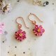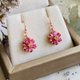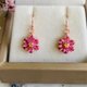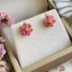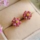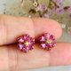 花朵造型的耳環和耳環(圈形),(花朵系列),鑲嵌一顆艷麗的粉紅色碧璽。花瓣為3x4毫米橢圓形,可選用黃色藍寶石或白色鋯石。