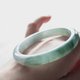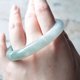 - 純天然A貨翡翠 尺寸:直徑53.4x47.3x寬9.8x厚7.6mm 種水:冰糯淺藍底帶藍水花 鐲型:貴妃平安 直徑53.4圈,適合一般50-51.5的手掌尺寸