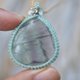 ◆このたびはミント、キャラメル色の蝋引き糸を使用しマクラメ編み装飾を施しました。