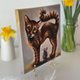 The cute kitten and mouse were originally painted with acrylic paints on a cotton canvas. This painting creates a lovely atmosphere at home and gives an attractive accent to any table, wall, desk, working place, shelf, and so on. A great gift for nature and animal lovers. A nice treat for Your wall.