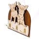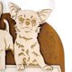 Coat rack is made of MDF (wood), tinted acrylic, using laser cutting and engraving and ecological lacquered.Figurine dog located at a distance from the main panel.Coat rack is equipped with two robust hangers