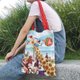 ◆STEPHY果果"夏日海灘"拉鍊帆布袋 手繪童趣快樂夏天托特包