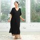 OMAKE V領連袖寬版洋裝 / 嫘縈 黑
